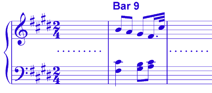 1 (a) (iii) Rewrite the last two notes of the extract above so that they sound at the same pitch, but using the alto C clef. Remember to put in the clef and the key signature.
